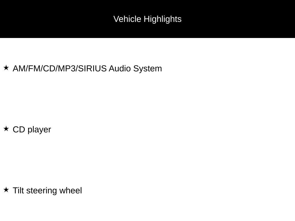 - AM/FM/CD/MP3/SIRIUS Audio System
