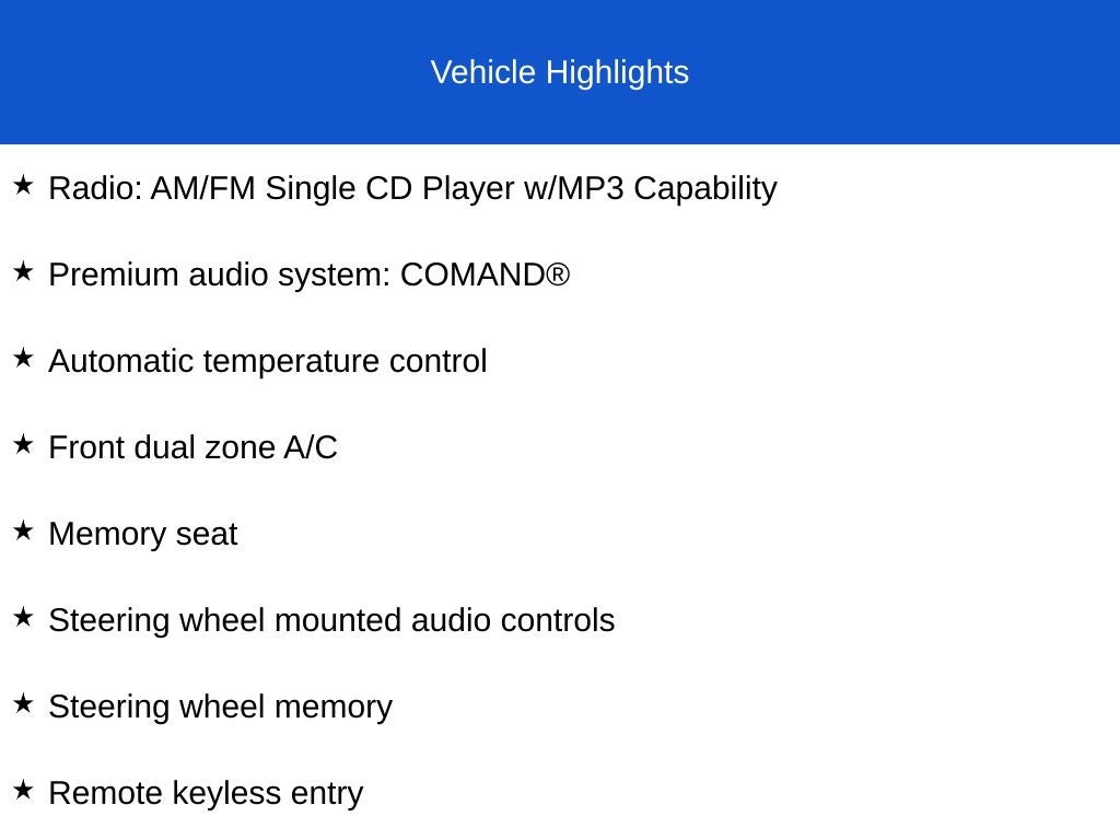 - Mercedes-Benz maintenance system -inc: displays distance remaining to maintenance, type of service due & reminders