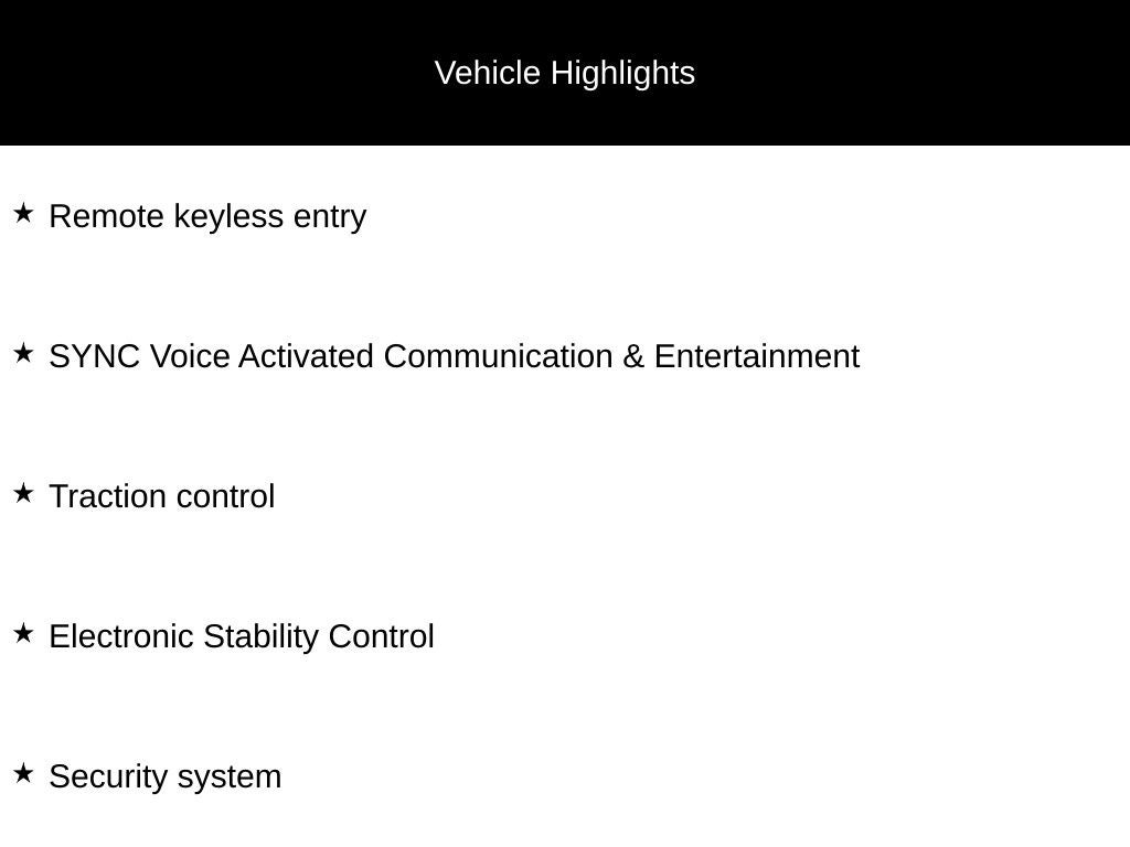 - SYNC Voice Activated Communication & Entertainment -inc: 911 assist and vehicle health reports, SYNC Applink provides control of certain smartphone applications using SYNC voice commands, Connect to apps like Pandora and more w/your iPhone, Blackberry or Android platform mobile phone