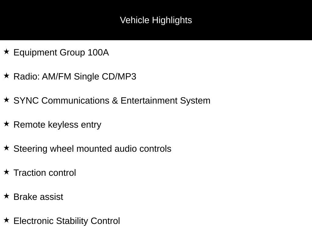 - SYNC Communications & Entertainment System -inc: enhanced voice recognition communication, 911 Assist, 4.2" LCD screen in center stack, AppLink and smart charging USB port