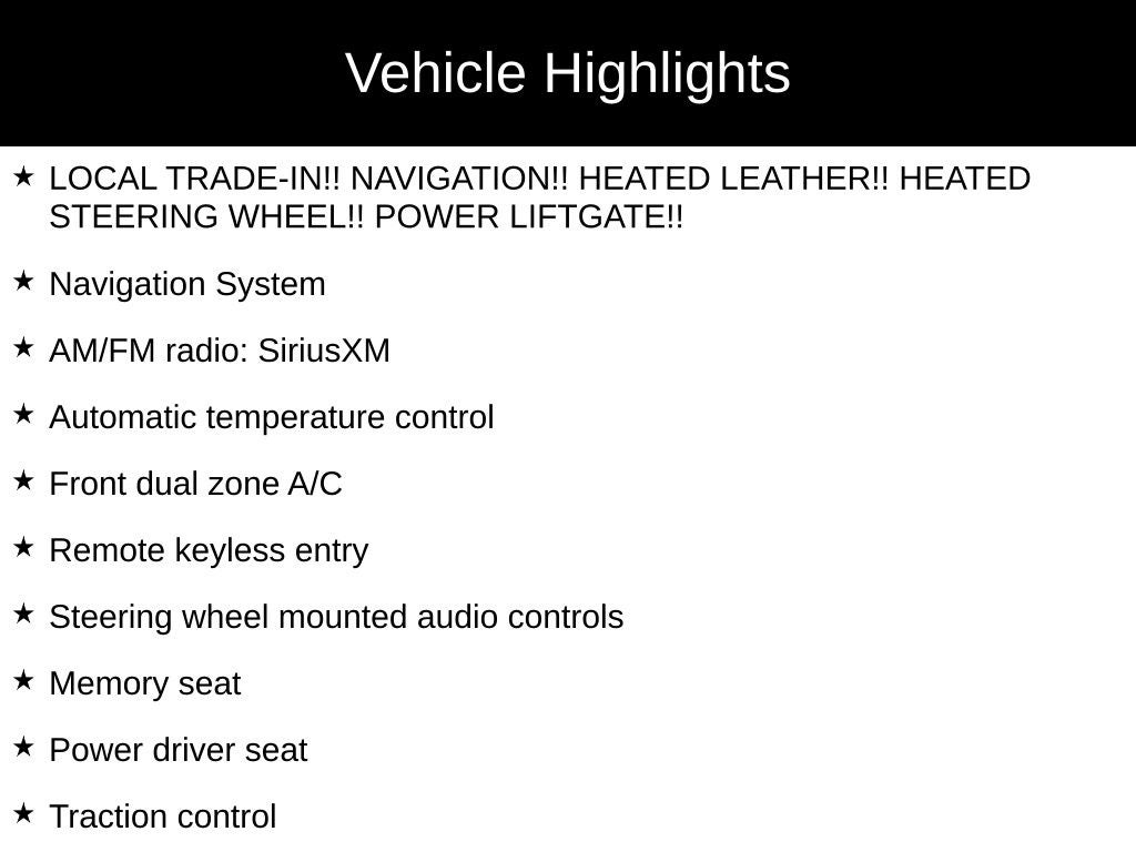 - LOCAL TRADE-IN!! NAVIGATION!! HEATED LEATHER!! HEATED STEERING WHEEL!! POWER LIFTGATE!!