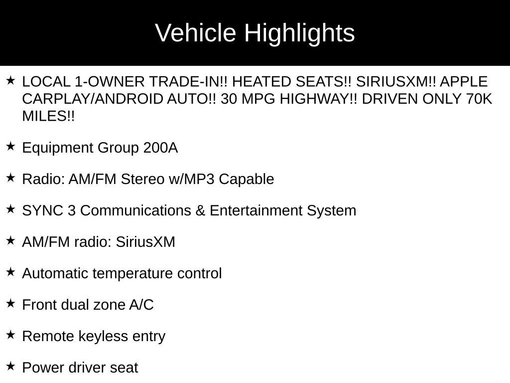 - LOCAL 1-OWNER TRADE-IN!! HEATED SEATS!! SIRIUSXM!! APPLE CARPLAY/ANDROID AUTO!! 30 MPG HIGHWAY!! DRIVEN ONLY 70K MILES!!