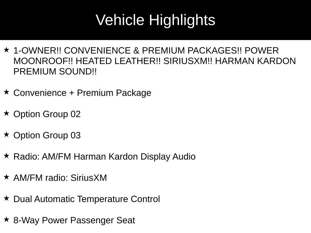 - 1-OWNER!! CONVENIENCE & PREMIUM PACKAGES!! POWER MOONROOF!! HEATED LEATHER!! SIRIUSXM!! HARMAN KARDON PREMIUM SOUND!!
