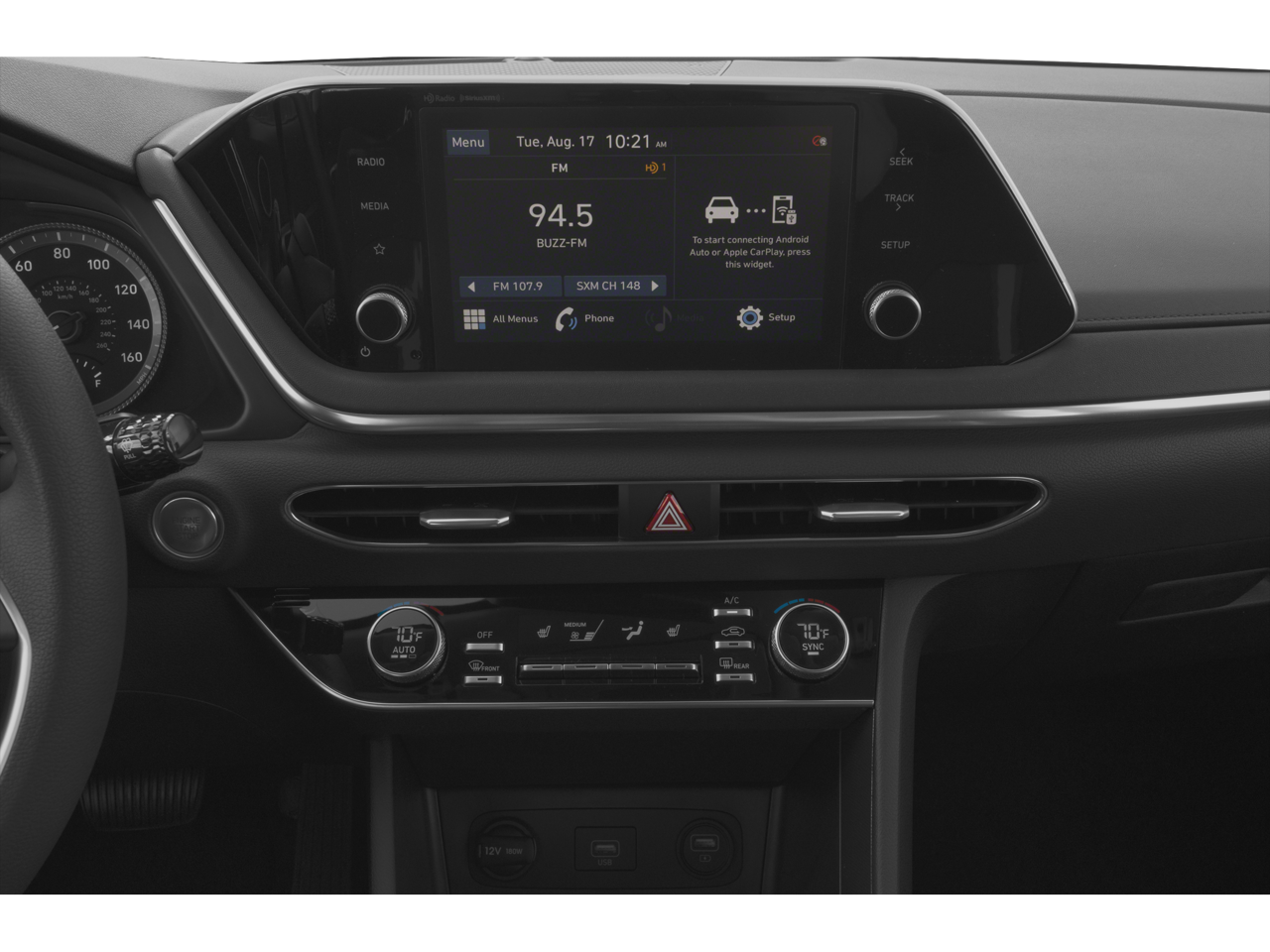 - Radio: AM/FM/MP3/HD/SiriusXM Display Audio -inc: 8" color touchscreen, 6 speakers (2 front door mounted speakers, 2 tweeters and 2 rear speakers), integrated Bluetooth®, Blue Link connected car system, Apple CarPlay, Android Auto and USB